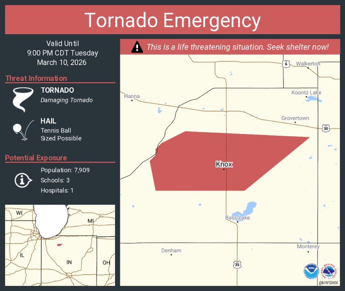 BREAKING: Tornado emergency issued for Knox, Indiana
