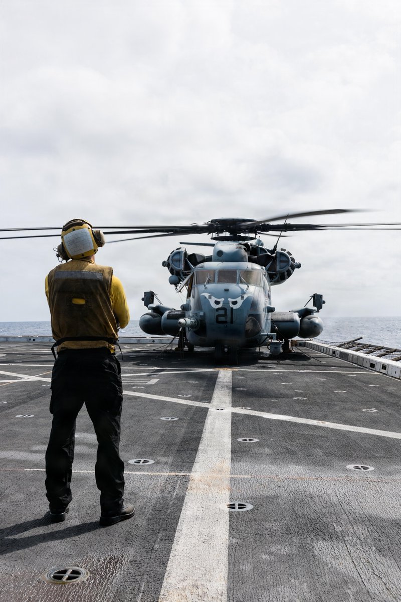 #Marines and @USNavy #Sailors assigned to San Antonio-class amphibious transport dock ship USS Portland (LPD 27), 11th Marine Expeditionary Unit, take part in flight deck operations in the Pacific Ocean. The 11th MEU is currently underway aboard the Boxer Amphibious Ready Group