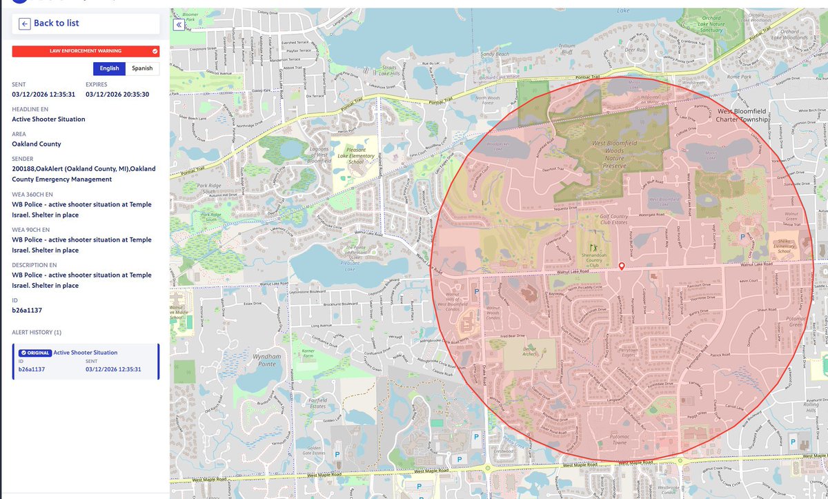 🚨 Shelter in Place ordered after active shooter reported at Temple Israel Synagogue in Michigan.