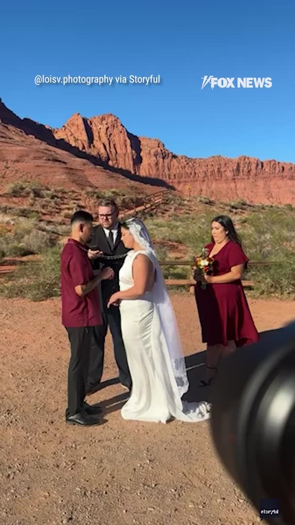 A wedding in Utah took a dramatic turn when a rockslide erupted behind the bride and groom.