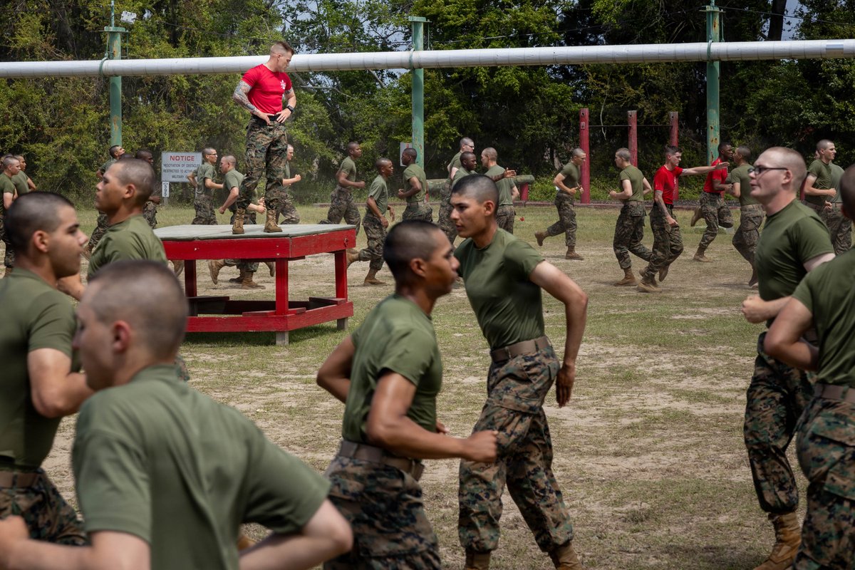 New #Marines with Bravo Company, 1st Recruit Training Battalion, take part in the Marine Corps Martial Arts Program (MCMAP) Endurance Course at Parris Island, SC. The course consists of multiple stations where the Marines practice MCMAP techniques in order to sustain what they