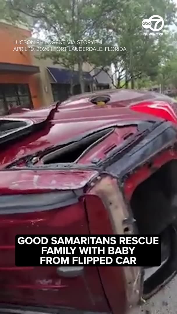 Several Good Samaritans rushed to rescue a family—including a baby—trapped inside an overturned car in South Florida on Sunday, April 19.