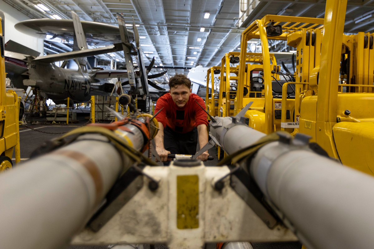CENTCOM: “Service members aboard USS Abraham Lincoln (CVN 72) work around the clock to keep sea-based fighter jets equipped for combat during Operation Epic Fury.”