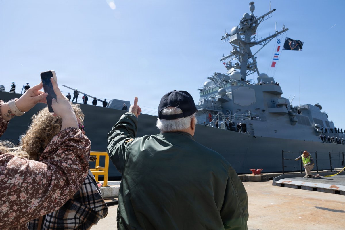 The future USS Harvey C. Barnum Jr. (DDG 124) arrived at its homeport of Naval Station Norfolk on March 20, ahead of its commissioning ceremony. The warship’s namesake, retired U.S. Marine Corps Col. Harvey Curtiss "Barney" Barnum Jr., a Medal of Honor recipient, welcomed the