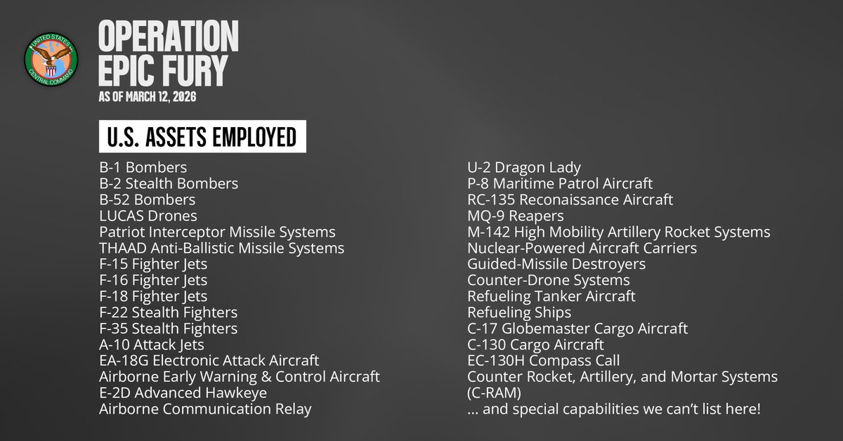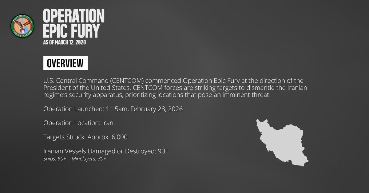 🚨 CENTCOM: Operation Epic Fury: March 12th Update: